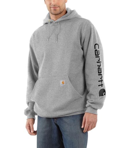 Carhartt Men's Sleeve Logo Hooded Sweatshirt Heather Grey/Black, L