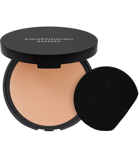 bareMinerals Barepro 24H Skin-Perfecting Pressed Powder - Light 25 Neutral er en 24-timers pudderfoundation med en hudplejende formel og fuld dækning, der har vist sig at reducere synlige porer og ujævn hudtone på bare fire uger. Denne langtidsholdbare pudderfoundation bliver på plads hele dagen uden at klatte og er også modstandsdygtig over for sved, fugt og vand. Den giver en glat, mat finish, der holder glansen på afstand, så du kan føle dig selvsikker med et friskt look i alle omgivelser. Om produktet: Kontrol af olie og glans hele dagen** Hudforbedrende formel reducerer porerne med 12 % efter 4 uger** Reduktion af mørke pletter/hyperpigmentering i løbet af 4 uger** Synligt glattere hudstruktur i løbet af 4 uger** Langtidsholdbar* presset pudderfoundation uden misfarvning** Sved-, fugt- og vandresistent** Ingen flashback ved fotografering** Forbrugertestet: 80 % af brugerne siger, at pudderet holder i 24 timer med ultrakomfortabelt slid* 91 % siger, at huden føles fugtet hele dagen* 90 % siger, at den udjævner hudtonen efter 4 ugers brug* Fordele: Pudder foundation 24 timers vægtløs brug* og oliekontrol hele dagen ** Reducerer forekomsten af porer og tekstur i løbet af 4 uger** Krølfri, overførselssikker og talkumfri** Ideel til alle hudtyper** Tilstopper ikke porerne Ikke acnegen Ikke komedogen Dermatologisk testet. ** *Baseret på en uafhængig forbrugerundersøgelse **Baseret på en uafhængig klinisk undersøgelse Anvendelse: Påføres vådt eller tørt. Til tør påføring: Påfør denne formel tørt med den medfølgende svamp eller Luxe Performance Brush (sælges separat) Denne påføring er ideel til kombineret eller fedtet hud eller til brug på farten 1 Tryk svampen eller børsten mod pudderet 2 Stryg produktet over ansigtet, begynd der, hvor du vil have mest dækning, og blend det udad i lange strøg Tip: Brug Maximum Coverage Concealer Brush (sælges separat) til at opbygge ekstra dækning, som spot concealer og til touch ups For lettere dækning anbefales påføring med Supreme Finisher Brush (sælges separat) -Til våd påføring: Hvis du har tør hud eller vil have den mest dækkende foundation, skal du bruge en fugtig svamp eller børste for at få den mest cremede påføring Professionelt tip: Lad pudderet tørre i 30 sekunder, indtil det har nået sin naturlige matte finish og nuance, før du lægger yderligere makeup, da nuancen kan se rigere og mere levende ud, når den påføres vådt Sådan fugter du svampen eller børsten: Svamp (medfølger). Fugt svampen under koldt vand, indtil den udvider sig. Pres overskydende vand ud i et håndklæde, så svampen er fugtig, men ikke gennemblødt Børste: Dyp børstehovedet i koldt vand (undgå at lægge børstehåndtaget i blød) Pres overskydende vand ud i et håndklæde, så børsten er fugtig, men ikke gennemblødt ...