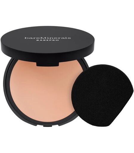 bareMinerals Barepro 24H Skin-Perfecting Pressed Powder - Light 20 Cool er en 24-timers pudderfoundation med en hudplejende formel og fuld dækning, der har vist sig at reducere synlige porer og ujævn hudtone på bare fire uger. Denne langtidsholdbare pudderfoundation bliver på plads hele dagen uden at klatte og er også modstandsdygtig over for sved, fugt og vand. Den giver en glat, mat finish, der holder glansen på afstand, så du kan føle dig selvsikker med et friskt look i alle omgivelser. Om produktet: Kontrol af olie og glans hele dagen** Hudforbedrende formel reducerer porerne med 12 % efter 4 uger** Reduktion af mørke pletter/hyperpigmentering i løbet af 4 uger** Synligt glattere hudstruktur i løbet af 4 uger** Langtidsholdbar* presset pudderfoundation uden misfarvning** Sved-, fugt- og vandresistent** Ingen flashback ved fotografering** Forbrugertestet: 80 % af brugerne siger, at pudderet holder i 24 timer med ultrakomfortabelt slid* 91 % siger, at huden føles fugtet hele dagen* 90 % siger, at den udjævner hudtonen efter 4 ugers brug* Fordele: Pudder foundation 24 timers vægtløs brug* og oliekontrol hele dagen ** Reducerer forekomsten af porer og tekstur i løbet af 4 uger** Krølfri, overførselssikker og talkumfri** Ideel til alle hudtyper** Tilstopper ikke porerne Ikke acnegen Ikke komedogen Dermatologisk testet. ** *Baseret på en uafhængig forbrugerundersøgelse **Baseret på en uafhængig klinisk undersøgelse Anvendelse: Påføres vådt eller tørt. Til tør påføring: Påfør denne formel tørt med den medfølgende svamp eller Luxe Performance Brush (sælges separat) Denne påføring er ideel til kombineret eller fedtet hud eller til brug på farten 1 Tryk svampen eller børsten mod pudderet 2 Stryg produktet over ansigtet, begynd der, hvor du vil have mest dækning, og blend det udad i lange strøg Tip: Brug Maximum Coverage Concealer Brush (sælges separat) til at opbygge ekstra dækning, som spot concealer og til touch ups For lettere dækning anbefales påføring med Supreme Finisher Brush (sælges separat) -Til våd påføring: Hvis du har tør hud eller vil have den mest dækkende foundation, skal du bruge en fugtig svamp eller børste for at få den mest cremede påføring Professionelt tip: Lad pudderet tørre i 30 sekunder, indtil det har nået sin naturlige matte finish og nuance, før du lægger yderligere makeup, da nuancen kan se rigere og mere levende ud, når den påføres vådt Sådan fugter du svampen eller børsten: Svamp (medfølger). Fugt svampen under koldt vand, indtil den udvider sig. Pres overskydende vand ud i et håndklæde, så svampen er fugtig, men ikke gennemblødt Børste: Dyp børstehovedet i koldt vand (undgå at lægge børstehåndtaget i blød) Pres overskydende vand ud i et håndklæde, så børsten er fugtig, men ikke gennemblødt ...