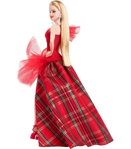 2024 Holiday Barbie-dukken legemliggør sæsonens varme og kærlighed i sin festlige kjole og festlook! Hendes udseende er virkelig dramatisk: kjolen kombinerer en draperet, glitrende overdel med en skulder i rødt med en ternet nederdel i fuld balkjole-stil. Brede tyl accenter tilføjer et moderne twist på et klassisk look. Emballagen er særligt velegnet til at vise denne samlerdukke og gør den til en fantastisk gave til børn fra 6 år og opefter. Inkluderer dukkestativ og ægthedscertifikat. ...