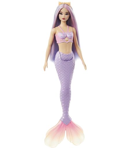 Dukkerne fra Barbie Dreamtopias havfruekollektion inviterer dig til fantasifuld leg omkring historier om venskab og fantastiske undervandsverdener. Hver dukke bærer en skaltop og har en detaljeret halefinne. Farverigt hår er pyntet med fint udformet tilbehør. Denne dukke har en lavendelblå halefinne og hår med striber af pastelrosa og lilla. ...