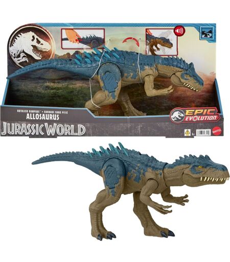 Denne enorme figur hører simpelthen hjemme i enhver dinosaursamling: Allosaurus fra Jurassic World Ruthless Rampage-serien er 43 centimeter lang og imponerer med skarpe tænder og et truende udseende. Dens krop er dækket af detaljerede teksturer. Men det er ikke alt: Når figuren aktiveres via urskiven, retter den halsen, laver en nedadgående bidende bevægelse og slipper et skræmmende brøl ud! Dens rygsøjler på ryggen og halen bliver længere, når der trykkes på knappen på halen. For mere fantastisk gameplay skal du scanne den skjulte sporkode i Jurassic World-appen (Android- og iOS-smartenhed sælges separat påkrævet). ...