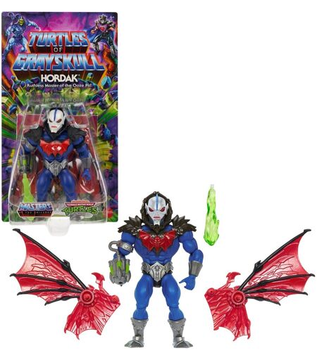 Masters of the Universe møder Teenage Mutant Ninja Turtles med actionfigurerne fra Turtles of Grayskull-serien: En eksplosion i Technodrome sender Teenage Mutant Ninja Turtles til den anden dimension til Eternia, hvor de slår sig sammen med MOTU-helte i kampen om Grayskulls kraft! Figurerne i denne serie er hver omkring 14 centimeter høje og kan tage flotte kampstillinger med 16 bevægelsespunkter. Hver figur er udstyret med skildpaddeinspireret rustning og tilbehør, der matcher historien. En mini-tegneserie viser crossover-historien - en fantastisk stimulans til kreativ leg. Den nostalgiske grafik på emballagen glæder samlere. ...