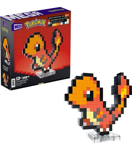 Pixelkunst med spændeklodser: Dette sæt fra Mattel MEGA Pokémon-serien skaber en cirka 15 centimeter høj Charmanda-figur i et retro pixel-look - baseret på den officielle Pokémon Pixel Art. Et originalt sæt til samlere og fans af Pokémon, der kan vises på forskellige måder: sættet indeholder en flad base til at stå op og et hak på bagsiden til vægmontering. ...