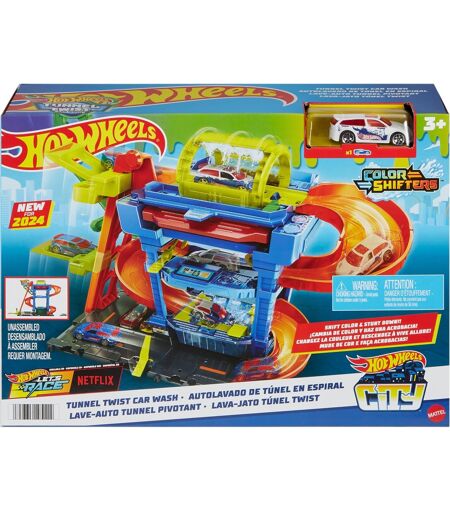 Med City Tunnel Twist bilvask fra Hot Wheels kommer en fantastisk legeoplevelse ind på børneværelset! Denne legebygning har en spændende vasketunnel og et nedsænkningsbassin. Forskellige interaktive punkter giver ekstra sjov - samt elevatoren og rampen, hvor bilerne kan suse på tværs af de forskellige niveauer. Den leveres med et Hot Wheels-køretøj, der kommer med en farveskiftende effekt. ...