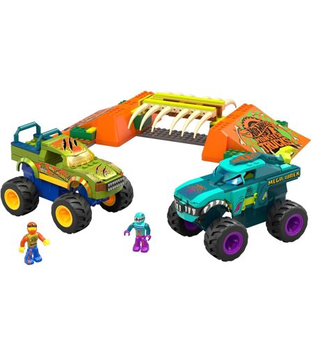 Med dette sæt fra Mattel MEGA serien kommer der masser af action ind på børneværelset. En Mega-Wrex og Wrexplorer Monster Truck er skabt af 332 dele. Banen kan samles i 3 forskellige varianter: Derefter skal køretøjerne blot trækkes baglæns - og delene vil flyve gennem luften ved sammenstød. Den mikroactionfigur, der kan bygges, passer i førersædet. ...