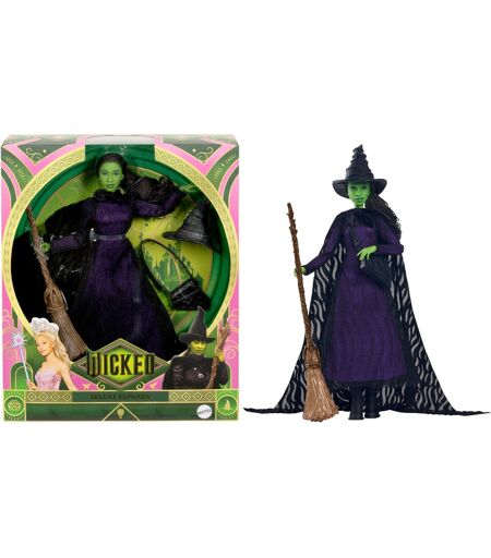 Deluxe Elphaba-modedukken fra Mattel er inspireret af filmen "Wicked" fra Universal Pictures og viser det magiske look fra filmen. Elphaba er prydet med en dramatisk kappe, der falder ned over hendes smukke sorte kjole med lilla undertoner og signaturstøvler. Den onde heks fra Vesten har stylet sit lange, flettede hår til en lav hestehale og bærer den hat, kost og taske, der er kendt fra filmen. Elphaba er bevægelig elleve steder og kan dermed bringes i den rigtige position til at genskabe filmscenerne. Der medfølger også et dukkestativ. ...