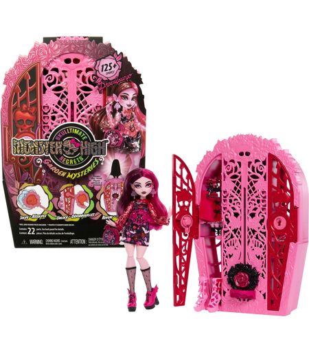 Med dette skræmmende garderobelegesæt med matchende dukke fra Monster High-serien er reglen: Først løsner, derefter låser du op og afslører! Draculaura forventes som gæst ved et uhyggeligt teselskab, men er ingen steder at finde! For at finde deres opholdssted skal du søge efter spor, med mere end 19 overraskelser at opdage i 3 uhyggelige og sjove trin. Når alle gåderne er løst, kan modetilbehøret kombineres med mange forskellige outfits. Så Draculaura gør altid et glamourøst udseende! ...