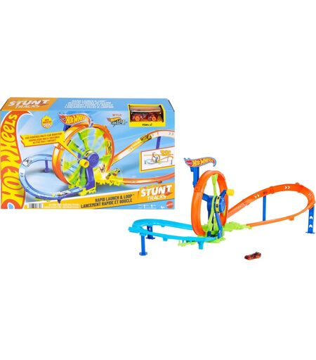Drej den innovative hjulmekanisme, og slip Hot Wheels-biler løs til gentagne stunts, løb og styrt med dette vilde legesæt! Den leveres med en legetøjsbil i en skala på 1:64: Kickeren affyrer den automatisk gennem løkken, rundt om svinget, ind i crashzonen og tilbage til starten. Ekstra biler (sælges separat) giver endnu mere sjov og øger forventningen om det uundgåelige styrt. Sættet kan foldes sammen og har et håndtag til praktisk transport og opbevaring. ...
