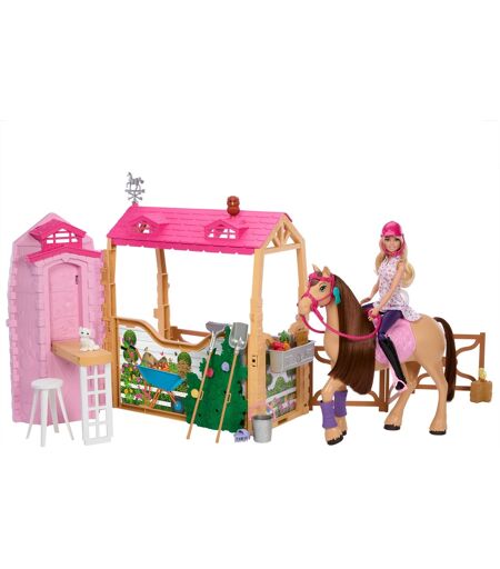 Fordyb dig i en verden af hesteeventyr og kreativitet med Barbie Mysteries: The Great Horse Hunt - Ultimate Horse Stable legesættet! Dette omfattende sæt med 25 elementer er inspireret af den fængslende Netflix-serie og byder på masser af sjov. Børneværelset er omdannet til en livlig hestestald med seks kærligt designede legeområder: forkæl Barbies trofaste hest med friske grøntsager ved foderstationen, sørg for en strålende glans i pelsen i plejeområdet, øv dig til den næste store turnering ved springhegnet, dekorer stalden med vundne bånd og redesign trofævæggen i henhold til de seneste succeser. Praktisk: Hestestalden kan foldes sammen for nem og pladsbesparende opbevaring. De livagtige detaljer opmuntrer børn til at finde på deres egne historier og opdage rideverdenen på en legende måde. Perfekt til små hesteelskere, der drømmer om sejrrige konkurrencedage og kærlig omsorg for deres firbenede venner! ...
