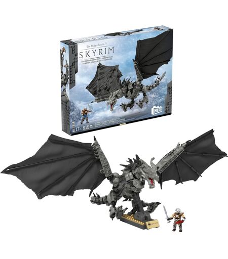 Den ikoniske kamp mellem Alduin the Eater of Worlds og Dragonborn fra computerspillet "Skyrim" kan nu genskabes med dette sæt klodser. Alduin har et vingefang på 63,5 cm og kan monteres på et bevægeligt stativ. Det er et rigtigt blikfang og et must-have i enhver Skyrim-fans samling. Sættet med i alt 619 stykker inkluderer en meget detaljeret Dovah-Kiin-figur for at genskabe det spændende vendepunkt på deres rejse. Hvem kan tæmme Alduins raseri? ...