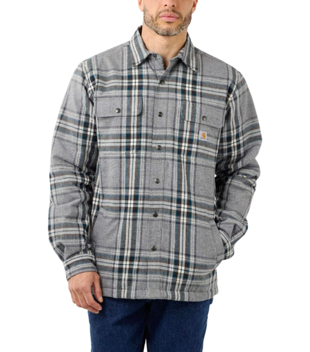 Carhartt Men's Flannel Sherpa Lined Shirt Jacket Asphalt, S