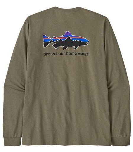 Patagonia Mens L/S Home Water Trout Responsibili-Tee, River Rock Green XL