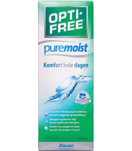 Opti-free Puremoist er en linsevæske som holder linserne fugtige i 16 timer, og giver god linsekomfort hele dagen. Opti-free Puremoist fjerner daglige fedt- og proteinaflejringer samtidig med at væsken ...