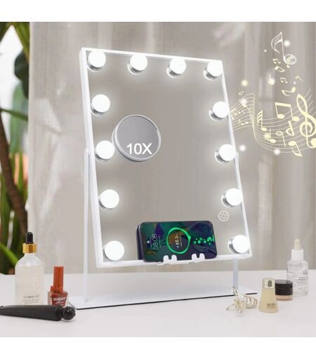 Hollywood Makeupspejl med lamper, 360° drejbar, 36,5 x 47 – Perfekt til Makeupproduktbordet