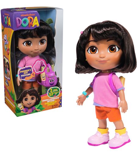 Dora, den livlige, eventyrlystne, familieforbundne pige fra den populære børnehaveserie, har glædet både børn og forældre i over 25 år. Børn elsker deres glade, farverige verden lige så meget som deres dyrevenner. Serien overbeviser forældre med sine pædagogiske, interaktive elementer. Børn danser og synger med Dora og lærer deres første engelskkundskaber på en legende måde - undervejs. Dette kan uddybes yderligere og udvides med Sing mit mir Dora, fordi hun taler enten tysk eller engelsk. Med to sange og mere end 25 sætninger og lyde fordyber børn fra 3 år sig i deres heltindes verden og lader hende komme til live i interaktion. Selvfølgelig er klassisk dukketeater med kæmning og frisør, påklædning og afklædning lige så muligt. Når hun skal på opdagelsesrejse, har Dora brug for sin rygsæk, som indeholder alt, hvad hun skal bruge til orientering i serien. ...