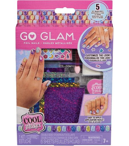 Seje stylede negle - det er nemt med Cool Maker Go Glam folie negle sæt! Uanset om alle negle er med samme folie eller en glitrende blanding af forskellige metalliske folier - det er en smagssag. Folierne gnides simpelthen på de dobbeltsidede klistermærker med værktøjet og dekoreres derefter, hvis det ønskes, yderligere med små dekorative klistermærker. Det medfølgende hjerte er en sød neglefil, der kan bruges til at glatte kanterne på negleklistermærkerne. Sådan kan du skabe flotte negle - uden neglelak og tørretid. ...