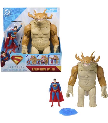Superman og andre helte fra DC-universet er tilbage på det store lærred - i filmen "Superman" fra 2025. I figurserien til Spin Master-filmen er forskellige karakterer fra filmen tilgængelige som actionfigurer. Dette sæt indeholder en figur af Superman og en Kaiju. Superman er omkring 15 centimeter høj og Kajiu omkring 30 centimeter høj. Begge figurer er baseret på karaktererne fra filmen i detaljer. Superman bærer sit typiske jakkesæt med den røde kappe lavet af stof. Hvis Superman rammer Kaiju med knytnæven i kamp, mister monsteret latteren. I løbet af kampen viser hans krop revner, og blåt slimet slim lækker fra hans mave og bryst. Kamphandlingerne kan gentages så mange gange, du vil, og det medfølgende slim kan genopfyldes via en åbning i Kaijus ryg. Superman og Kaiju kan bevæge deres hoveder, arme og ben. Kaiju kan også åbne munden. ...