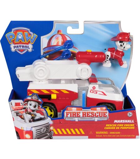 Spændende nyheder på Paw Patrol: Adventure Bay får en brandstation. Den første vanskelige situation opstår dog direkte ved åbningsceremonien, og de modige pelsede venner må komme til undsætning igen i deres brandredningsuniformer og brandbiler. Fra Spin Master er Fire Rescue-køretøjer, der matcher serien - hver med en anden helt om bord. Hundene kommer i deres nye udstyr, køretøjerne har flotte funktioner med spændende legefunktioner. Marshalls brandbil er omkring 18 centimeter høj og har en vippestige, et kuglefald og opbevaringsrum, hvor de 2 vandprojektiler kan opbevares sikkert. Du skal blot placere et projektil i dråben og skyde med et tryk på en knap. Det medfølgende Marshall in Fire Rescue-look er omkring 5 centimeter højt. Figuren kan fastgøres til køretøjet, inden den næste redningsaktion starter. ...