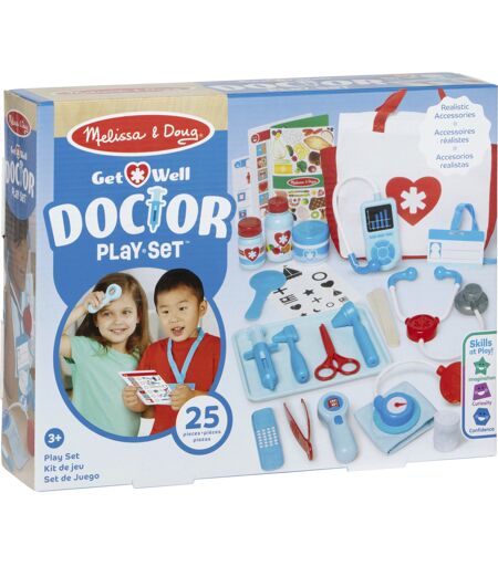 Børn elsker at glide ind i rollen som læge og undersøge bamser, dukker, søskende eller endda venner og at behandle det. Med dette spin master Melissa & Doug legesæt kan du lade din fantasi få frit løb! Sættet i 25 dele indeholder tonsvis af realistisk designet tilbehør såsom stetoskop, blodtryksmåler, høretestapparat, sprøjte, saks, pincet, pandetermometer, reflekshammer, otoskop, øjendæksel, spatel, hætteglas, navnekort, undersøgelseskort og mere. Alt tilbehør kan opbevares i den medfølgende lægetaske og dermed nemt tages med dig. ...