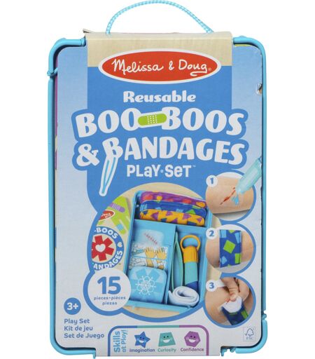 Plaster og bandager er meget populære blandt børn! Med dette sæt fra Spin Master Melissa & Dougs verden kan de til enhver tid forkæle sig selv og andre i realistisk rollespil. Du skal blot fugte huden med vandpinden og derefter påføre de realistiske sår. Dæk med et plaster, og fjern derefter igen, så såret heler. Kanterne på de genanvendelige sårklistermærker forsvinder, når de er våde, så sårene ser utroligt realistiske ud på alle hudtoner. Efter leg kan alt tilbehør opbevares i den robuste kasse. ...
