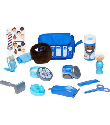 Frisørsæt er kun tilgængelige for piger? Drenge elsker også at dedikere sig til hår- og skægpleje som deres fædre. Med realistiske plejeredskaber og et kunstskæg til at bære om halsen (passer til børn og voksne) kan børn fordybe sig i rolleleg med dette sæt fra Spin Master Melissa & Doug. Inkluderet er en vibrerende skæreanordning, en dåse "barberskum", en "Barbersæbe"-æske, en barbermaskine og børste, saks, børste, kam, "hårgelé", vaskeklude, et justerbart spejl og en Frisure kort. Uanset om det er traditionel barbering med børste og barbersæbe eller mere moderne med pumpedåse og barbermaskine eller skægstyling, i denne legetøjsfrisørsalon får alle deres ønskede behandling! Alle redskaber kan opbevares i den medfølgende lynlåspose. ...