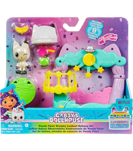 Spin Masters altanlegesæt giver børn fra 3 år mulighed for at genskabe deres yndlingsscener fra den populære Gabby''s Dollhouse-serie. Legesættene kan fastgøres til dukkehusets facade, som kan købes separat, eller selvfølgelig bruges uafhængigt. Dette sæt indeholder en pandapotefigur, der er omkring 6,3 centimeter høj, møbler og 6 tilbehør - inklusive et teleskop og vedhæng til altanen. Derudover er der gemt en lille overraskelse i sættet - et donut-vedhæng. ...