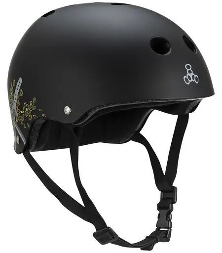 Triple Eight Sky Brown Sweatsaver Skate Helmet er designet i samarbejde med skateboard-fænomenet Sky Brown, og hjelmen har en slående mat sort finish prydet med kirsebærblomster og katanaer, inspireret af hendes japanske arv. ...