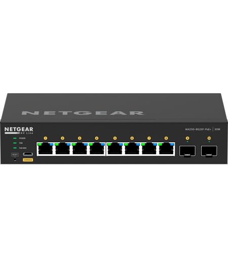 Netgear AV Line GSM4210PX er en højtydende switch designet specielt til professionelle lyd- og videoapplikationer. Med sine ti porte, herunder otte PoE+-aktiverede porte og to SFP-porte, tilbyder den fleksible tilslutningsmuligheder til krævende AV-installationer. GSM4210PX understøtter op til 480W PoE-strøm og muliggør problemfri integration af AV-enheder. Forudkonfigureret til populære AV-protokoller som Dante, Q-SYS og AES67 sikrer det nem opsætning og pålidelig ydeevne. Med sin brugervenlige AV-GUI og omfattende tilpasningsmuligheder er GSM4210PX den ideelle løsning til moderne AV-miljøer, der kræver de højeste niveauer af kvalitet og effektivitet. ...