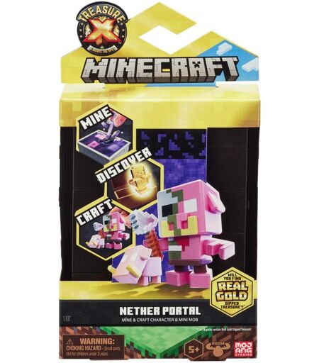 Treasure X Minecraft Nether Portal Mine & Craft Character & Mini Mob er spændende at åbne og inkluderer et par Minecraft-figurer og tilbehør. Åbn emballagen, overraskelsestasken, låget på æsken, og hack toppen. Indeni gemmer sig en pose med enten Slime eller sand, hvori du finder dele til din figur (hvis du er rigtig heldig, finder du en skat dyppet i ægte guld). Fyld kisten og drypværktøjet med vand og saml din figur ved at placere og dryppe lidt vand på hjerterne mellem delene. Hvilke detaljer din pakke indeholder vil være en overraskelse, da du ikke ved, hvad hver æske præcis indeholder. Hvilket figurpar og hvilken skat du får i, kender du først din særlige æske, når du har udforsket indholdet Mål: 15,5 x 11,5 x 4,8 cm (emballage) Anbefales fra 5 år og opefter. ...