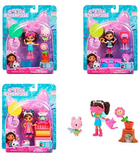 Med Spin Master kan førskolebørn fordybe sig i den kattesmagiske verden i den populære animerede serie Gabby''s Dollhouse. Hvert kattesæt indeholder en gabby, der kan tilpasses, en kattefigur med tema, et møbel og to tilbehør med en overraskelsesæske til kattelevering. Ligesom Gabby i begyndelsen af hver episode kan leveringspakken åbnes for at opdage mystisk tilbehør til hvert sæt. Gabby-karakteren er udstyret med en mekanisk funktion: Hvis katteørebøjlen trykkes, viser Gabby sig i aktion. Art Studio håndværkssættet med babykasse, sættet Flowerrific Garden med Kitty Fairy og sættet Karaoke Party med DJ Catnip fås som tilfældige varianter. ...