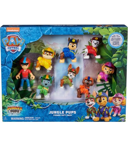 Nye eventyr fra Paw Patrol venter i junglen: Som junglehvalpe oplever de hjælpsomme hvalpe spændende eventyr i den dybt skjulte vildmark. En vulkan truer junglen og dens indbyggere. En klar sag for Paw Patrol! Dette figurlegesæt indeholder alle otte hovedpersoner: Ryder, Chase, Marshall, Skye, Rubble, Rocky, Zuma og Tracker! Dette giver dig mulighed for at genspille alle jungleeventyrene fra tv-serien tro mod originalen derhjemme. ...