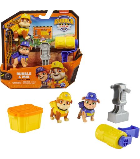 Konstruktionspoterne er her! Rubble og hans fætter Mix kan næsten ikke vente: Små byggefans kan genopføre spændende eventyr med de to seriehelte eller gennemføre deres egne projekter med værktøjerne. Med rullen kan flotte mønstre presses ind i det medfølgende Kinetic Sand Build-it Sand, og formstansen skærer nøjagtige byggeklodser ud. Kinetic Sand Build-it Sand klæber til sig selv: det kan øses, æltes og presses efter ønske. Det magiske sand kan formes igen og igen og arbejdes videre med byggelegetøjet. Efter at have spillet finder sandet sin plads i den genlukkelige beholder på ingen tid overhovedet. ...