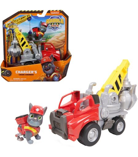 Med dette kranentreprenørkøretøj og Charger-figuren kan børn fra tre år udspille deres yndlingsscener fra tv-serien "Rubble & Crew". Med sin drejelige og udtrækkelige bom løfter Chargers kranentreprenørkøretøj alt, hvad der skal transporteres og placeres på byggepladsen. De fungerende hjul bringer hurtigt entreprenørkøretøjet til stedet, hvor kloen for enden af armen også opsamler tunge belastninger. ...