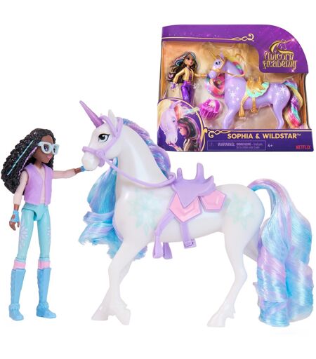 Tag til Unicorn Academy med Spin Masters figurer! I tråd med Netflix-serien er der også figursæt, som hver kombinerer en hovedperson i serien med hendes enhjørning. Med disse sæt kommer historierne og karaktererne på børneværelset til live. Dukkerne har hver 7 bevægelsespunkter. Du kan bruge den til at ride på enhjørningerne, hver med silkeagtige maner og haler - perfekt til børstning, fletning og dekoration. Sadel og trense er aftagelige. Dette sæt indeholder den belæste Layla som figur sammen med hendes enhjørninge Gletsjer. ...