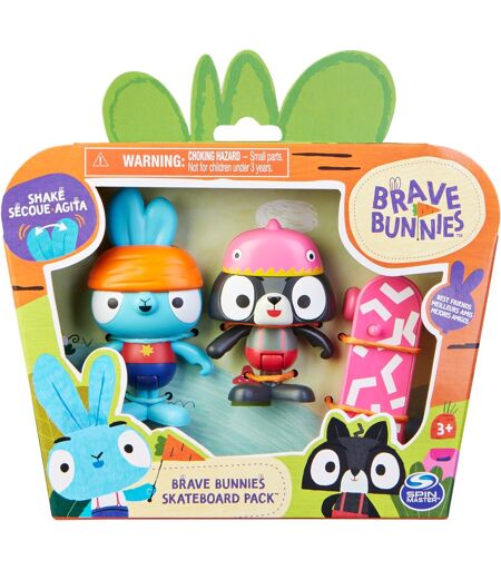 Brave Bunnies er kendt fra tv-serien "Brave Bunnies - Hasenbande unterwegs" på SUPER RTL. Kaninbørnene Bop og Boo er søskende og oplever mange eventyr med deres kaninfamilie og deres venner, de bedste kaninvenner. Med de forskellige grundfigursæt kan børnene nu også genopføre eventyrene derhjemme. Hvert sæt indeholder et af kaninbørnene Bop eller Boo, en bedste kaninven (Bao Panda eller Ricky Raccoon) og et tilbehør, der kan bruges til autentisk at genskabe en historie fra tv-serien. Figurerne kan bevæge arme, ben og hoved og forbindes til tilbehøret ved hjælp af hak på hænder og fødder. Boo og Bop vrikker endda med ørerne. I "Skattejagtpakken" med skattekiste og kort kan børn sende Boo Rabbit og Garry Tiger på spændende skattejagter. Skattekisten kan åbnes og lukkes. Så en skat kan gemmes i den og findes efter en eventyrlig skattejagt. Brave Bunny Treasure Pack opfordrer til leg og er en ideel gave til børn. Emballagen indeholder en yderligere overraskelse: Efter udpakning af figurerne kan pap udfoldes og bruges som farvelægningsside. For endnu flere legemuligheder er der en Painting Canvas Pack og en Skateboard Pack. Velegnet til børn fra 3 år. ...