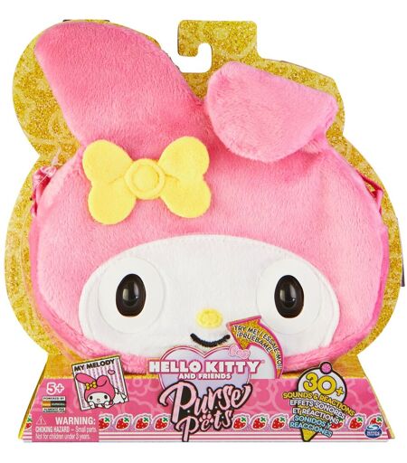 Min Melodi, den søde hvide kanin med den lyserøde hætte, ser særlig sød ud som Purse Pet''s taske med kink øret. Især når det kommer til livet med øjenblink, lyde og musik. Bare tryk og afsted. Alle lyde og også musikken er fra Hello Kitty and Friends verden og dermed er alle fans meget velkendte. Med interaktive spil som stilkonsultationen med ja-nej-måske svar og ønskede genopladninger er der masser af sjov og underholdning på tilbud. Da My Melody også erobrer hjerterne hos ældre fans, er den større i format end konventionelle Punge Pets tasker, og også den justerbare rem trykt med søde motiver er længere med 107 cm. Indvendigt giver tasken plads til alt det, der absolut skal tages med på din næste bytur: pung, mobiltelefon, nøgler og de vigtigste skønhedsartikler passer komfortabelt indeni. Og trænger du til lidt fred og ro, mens du handler, kan du sagtens slå tasken ud imellem, så den bare er smuk. ...