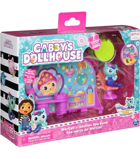 Med Spin Masters legesæt i luksusværelset kan børn fra 3 år genskabe deres yndlingsscener fra den populære Gabby''s Dollhouse-serie. Dette legesæt indeholder et wellness-dukkehus, der tastiker for katte, og møbler, der kan bruges sammen med både krydstogtskibet og Gabbys Purrfect-dukkehus (sælges separat). Den kommer med en sød havkillingefigur, samt hendes boblende badekar, en drejelig wellness-stol, et make-up spejl og meget mere. Der er også en lille overraskelse at opdage: en blomsterkrone. ...