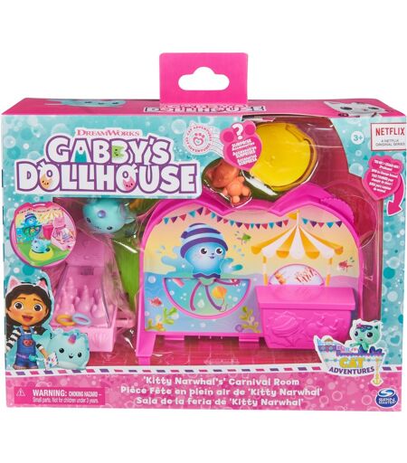 Med Spin Masters legesæt i luksusværelset kan børn fra 3 år genskabe deres yndlingsscener fra den populære Gabby''s Dollhouse-serie. Dette legesæt indeholder et kattetastisk dukkehusfestrum og møbler, der kan bruges sammen med både krydstogtskibet og Gabbys Purrfect-dukkehus (sælges separat). Den kommer med en sød killing narhval figur, en boldgrav, et katteringkastespil, en snackbar og meget mere. Der er også en lille overraskelse at opdage: et karamelæble. ...