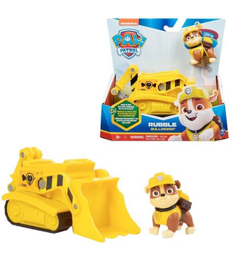 For Rubble, den elskværdige bygningsarbejder fra den populære tv-serie Paw Patrol og hans ca. 13 cm lange legetøjskøretøj, er ingen pæl for stor og ingen pote for lille. Med autentiske detaljer og fungerende hjul, bevægelige boremaskiner og skovl er Rubbles byggepladskøretøj klar til spændende eventyr med pelsede venner. En Rubble-figur i standardskalaen for heltehvalpene (ca. 7 cm høj) er inkluderet. Da figuren af køretøjet og minidukken er i standardskala, passer de ind i mange andre legesæt i PAW Patrol-legetøjsserien. At lege med Rubble og hans køretøj stimulerer barnets fantasi til at redde missioner, der drejer sig om venskab, teamwork og mod. Sammen med de andre hvalpe og deres redningskøretøjer (hver sælges enkeltvis) kan Rubble redde verden i Adventure Bay endnu bedre med sit byggepladskøretøj i wuffy team adventures! ...