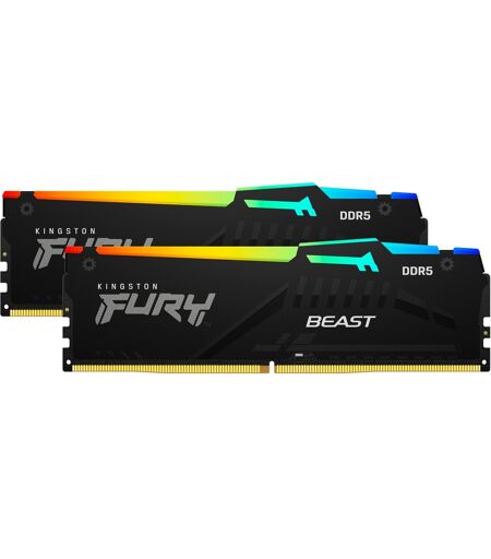 Kingston KF556C36BBEAK2-32 er et sæt med to 16 GB DDR5-5600 hukommelsesmoduler (PC4-44800) fra Fury Beast RGB-serien. Den samlede kapacitet er 32 GB. De 288-polede unbuffered DIMM''er understøtter en latenstid på 36-38-38 ved 5600 MHz og kræver 1,25 volt spænding. Intels XMP 3.0 understøttes. ...