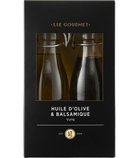 Et lækkert gavesæt til madlavningen Smuk gaveæske med olivenolie og balsamico m. trøffel. Olivenolien er glat og lækker, og balsamicoen har en delikat smag af trøffel. Perfekt sæt til dressinger, marinader og tilberedning af kød, fisk, kartofler, grøntsager etc. Flaskerne er pakket ind i en flot gaveæske - den perfekte gave til enhver madelsker. Antal: 2 x 200 ml 100% genanvendeligt glas ...