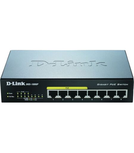 D-Link DGS-1008P netværksswitch Ikke administreret Gigabit Ethernet (10/100/1000) Strøm over Ethernet (PoE) Sort
