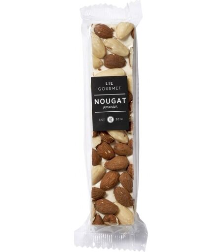 Klassisk fransk nougat m. mandler fra Lie Gourmet Oplev den lækre smag af klassisk fransk nougat med mandler – en sød fornøjelse, der smelter på tungen. Denne delikatesse er perfekt til en god kop kaffe eller te og giver en luksuriøs smagsoplevelse, der vil glæde dine sanser. Indhold: 100g 100% genanvendelig indpkaning ...