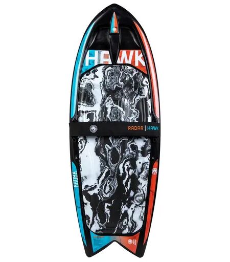 Lav skarpe turns med Hawk Knee Wakeboard fra Radar Radars Hawk knee wakeboard er et wakeboard til slalom-agtig riding. Med en smal front og et 3.2" swallow tail design. Det er et hurtigt og responsivt board takket være spidserne, der ubesværet skærer sig gennem vandet. ...