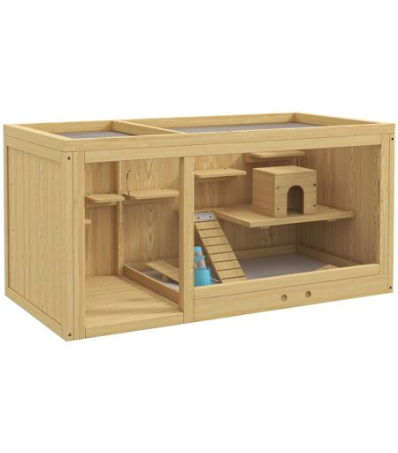 Hamsterbur lille dyrestald i træ, legehus for ørkenrotter, med gynger, stiger, oplukkelig tag, hytte, 100cm, natur