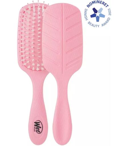Wet Brush Go Green Tea Tree Oil Infused Shine Brush er en revolutionerende hårbørste, som er skabt med fokus på miljøet. Børstens pude indeholder vandmelon olie, som er med til at tilføre håret en masse fugt. Håndtaget på denne børste er lavet af en biologisk plantestivelse, der naturligt nedbrydes indenfor 5 år. Når håret er vådt er det svagest, og derved mest udsat for skader. Ved at bruge en børste, som hiver i håret kan det knække på samme måde som når en elastik springer. Denne børste er lavet med eksklusive og ultra-bløde IntelliFlex børstepigge, som skånsomt redder knuder og filtret hår ud uden at ødelægge det. Derudover er den også med naturlige vildsvine-hår, der 'suger' hårets naturlige olier til sig, og fordeler det ud i længder og spidser. Derved opnår man et glansfuldt og silkeblødt resultat. Ikke nok med at det minimerer chancen for at håret knækker, så giver det også en mere behagelig frisering. Wet Brush er en serie af hårbørster til privatbrug, som er skabt i et hav af forskellige farver og former. Man kan få en børste til alle behov, uanset om det er til når man er på farten, under bruseren, stylingen, børnene osv. Detaljer Hårbørste Lyserød Med vandmelon olie, som giver fugt Kan både bruges til tørt og vådt hår Glider let og ubesværet igennem håret Minimerer chancen for knækkede hår Eksklusive og ultra-bløde Intelliflex børstepigge og vildsvine-hår Miljøvenlig Nedbrydes naturligt indenfor 5 år Håndtag produceret af biologisk plantestivelse Anbefales til alle hårtyper Må ikke bruges sammen med føntørrer, da varmen kan ødelægge piggene ...