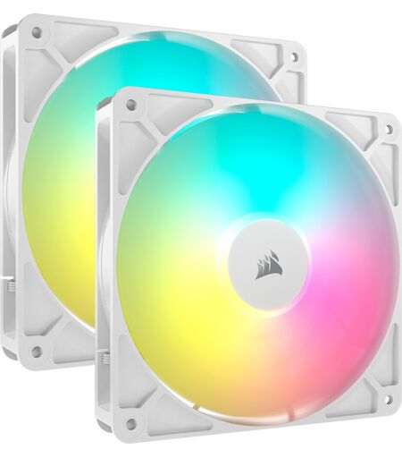 CORSAIR RS140 ARGB 140 mm PWM Fan 2 Pack er en nem måde at udvide dit pc-kølesystem på. Daisy-chain-stikkene gør det muligt at forbinde flere blæsere sammen og alle styres via kun et 4-bens PWM og et +5V ARGB-stik på bundkortet. Med blæserhastigheder på op til 1.700 omdr./min. og et statisk tryk på 3,46 mm-H2O kan den også bruges som radiatorventilator. CORSAIR AirGuide-teknologi med anti-hvirvelfinner dirigerer luftstrømmen for koncentreret, højtydende køling. Otte LED''er oplyser systemet med simpel +5V ARGB bundkortkontrol. Magnetkuppellejer giver mere støjsvag drift og længere levetid, mens Zero RPM-tilstand giver mulighed for støjsvag drift ved lave belastninger. ...