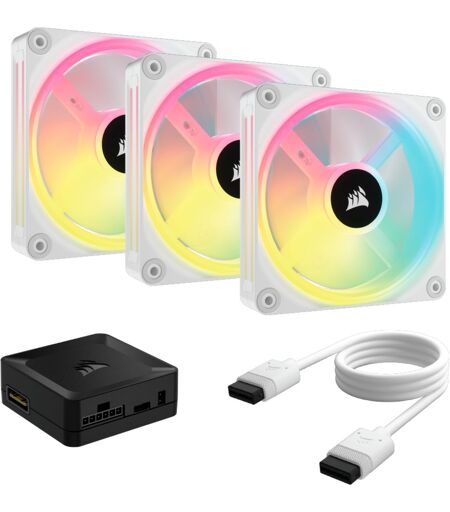 Med Corsair iCUE LINK QX120 RGB 120 mm PWM-blæseren kan du belyse systemet fra alle vinkler. CORSAIR iCUE LINK QX120 RGB 120mm PWM Fan Starter Kit leveres med tre blæsere, hver med fire separate lyssløjfer. Takket være PWM-styring kan den krævede blæserhastighed justeres præcist op til 2.400 omdr./min. – med understøttelse af nul omdrejningstal-signaler. Samtidig sikrer et magnetisk levitationsleje mindre friktion, længere levetid og minimal støj. I ICUE LINK-økosystemet kan alle ventilatorer tilsluttes den medfølgende iCUE LINK-systemhub med kun ét kabel – for et mere ryddeligt system med færre kabler. iCUE LINK åbner op for mange muligheder for belysning og styring, herunder den eksklusive Time Warp-belysningstilstand og intelligente blæserkurver med integreret temperatursensor. ...