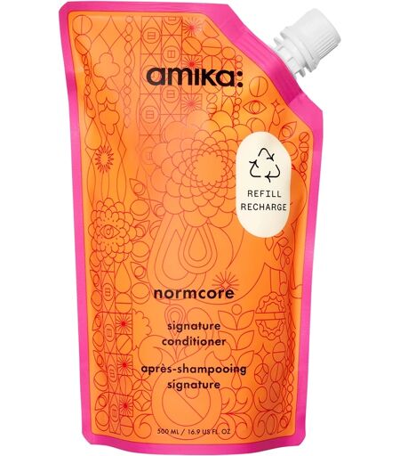 amika: Normcore Signature Conditioner er en utrolig fugtgivende balsam, som kan anvendes til alle hårtyper. Den har en meget rig og cremet formel, som indeholder havtorn, der er en af verdens mest næringsrige bær. Derudover er formlen også beriget med sheasmør, som er sprængfyldt med mineraler, 5 forskellige fedtsyrer samt vitaminer, som trænger ind i hårets skællag og tilfører fugt i dybden. Med denne balsam efterlades ens hår glansfuldt, fløjlsblødt og meget mere medgørligt, og den virker derudover farvebevarende. Fordele: Conditioner Refill Anbefales til alle hårtyper Rig og cremet formel Fugtgivende Indeholder havtorn Nærende Beriget med sheasmør Glansgivende Blødgørende Gør håret mere medgørligt Vegansk Anvendelse: Påføres i nyvasket og fugtigt hår Fordeles i hårets længder og spidser Skyl derefter grundigt med vand Ingrediensliste: Water/Eau/Aqua, Cetearyl Alcohol, Behentrimonium Chloride, Fragrance/Parfum, Glycerin, Butyrospermum Parkii (Shea/Karite) Butter, Hippophae Rhamnoides (Sea Buckthorn/Argousier) Fruit Extract, Silicone Quaternium-8, Trideceth-10, Capryloyl Glycerin/Sebacic Acid Copolymer, Diheptyl Succinate, Isopropyl Alcohol, Cocamide MIPA, Polyquaternium-37, Caprylyl Glycol, Propylene Glycol Dicaprylate/Dicaprate, Ethylhexylglycerin, Hexylene Glycol, PPG-1 Trideceth-6, Citric Acid, Sodium Hydroxide, Phenoxyethanol, Butylphenyl Methylpropional, Limonene, Hydroxycitronellal, Hydroxyisohexyl 3-Cyclohexene Carboxaldehyde, Citronellol. ...